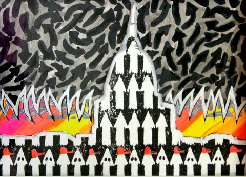 The Shape of Supremacy, acrylic and silkscreen on paper,13.25" x 10.25"
