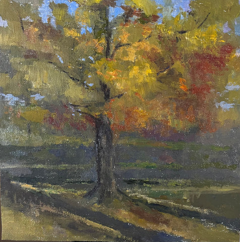 Lemon Hill Autumn Tree, oil on linen, 8 1/2" x 8 1/2"