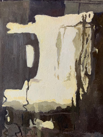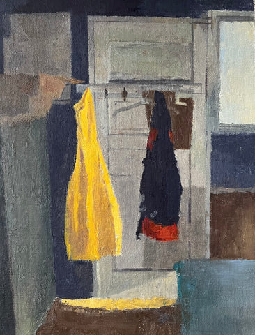 Murky Yellow Rain Jacket, oil on linen, 12 5/8" x 9 5/8"