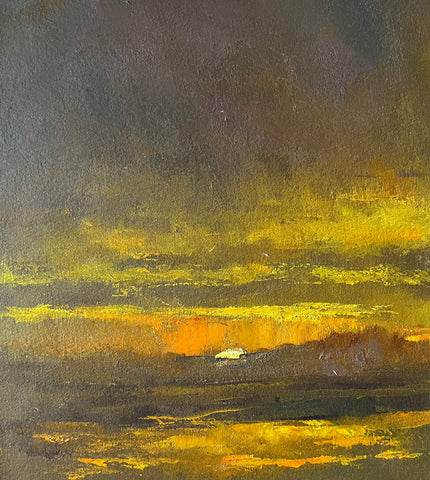 Yellow Sunset at the Bay, oil on paper, 8 1/8" x 7 1/4"