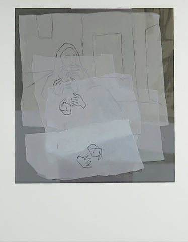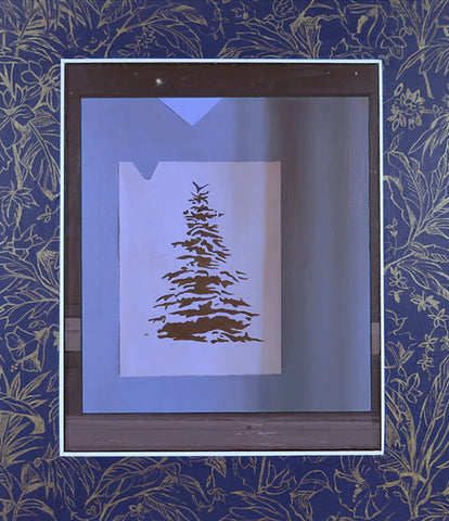 Cerulean Arts is pleased to present Sleepy Drivers featuring paintings by Meghan Cox and Jacob Lunderby. The exhibition evokes a sense of drift between attention and one’s ostensibly fixed physical interactions within the domesticity of architectural space and pastoral environments. Both artists make use of collage influenced painting ideas to explore layers of seeing and representation. Meghan Cox’s paintings on paper stage compositions of window frames with obstructed views. Her hand-painted work incorporates references to artist’s bookplates, collages of pattern, drawings on tracing paper and the verso of her painting’s panel into metaphysical world-building environments. Jacob Lunderby’s digital compositions present mediated images of his parents’ photography sets within the verdant landscape of his family’s home in Minnesota.