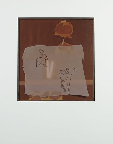 Meghan Cox, Deer, Rabbit, oil on paper over panel, 14" x 11"