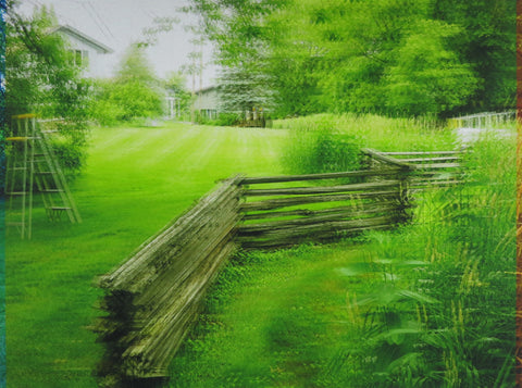 Jacob Lunderby, Set/Setting: Jackleg Fence, inkjet ink, digital ground and varnish on archival polyester film mounted to panel, 16” x 21.5”