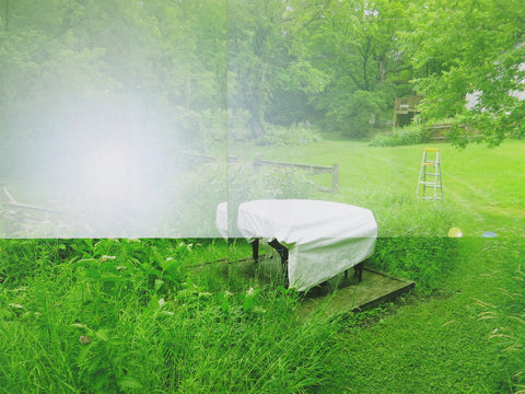 Jacob Lunderby, Set/Setting: Piano and Prairie Grass, inkjet ink, digital ground and varnish on archival polyester film mounted to panel, 16” x 21.5”