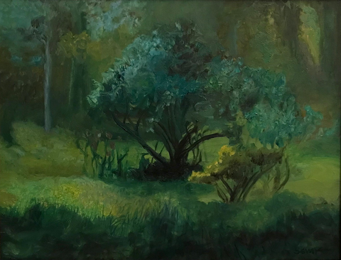Sevcik, The Blue Tree (Peace Valley Park), oil on canvas, 14" x 18" SOLD