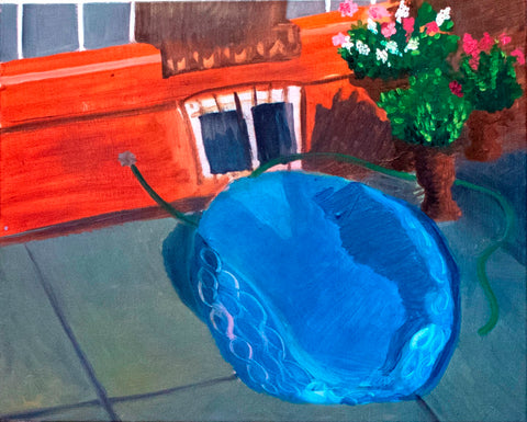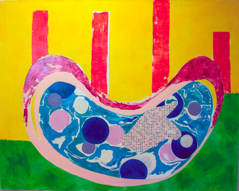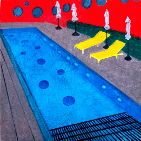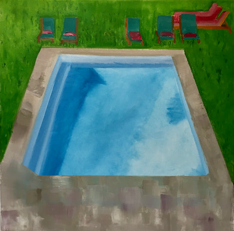 Over the past year my work is transitioning from a focus on pool imagery to the discarded, out of place lonely object. My artworks are formed using a combination of memory, invented imagery and found object studies. The star of my paintings is the usage of mark and the sensuousness of color. With each work, I am trying to allow the viewer to enter into a colorful space, but one in which there are uncertainties. I want the imagery to swirl around you, leap towards you and hold your attention. Hear the staccato of the mark made on the surface. Pools are most often associated with places of relaxation and fun, these spaces are undefined and perhaps a bit distorted, thus, they don’t allow the viewer to get too comfortable.