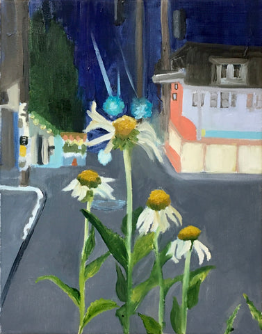Marabou Alley, oil on canvas, 20" x 10" Available