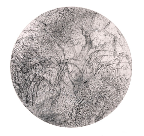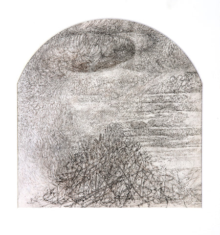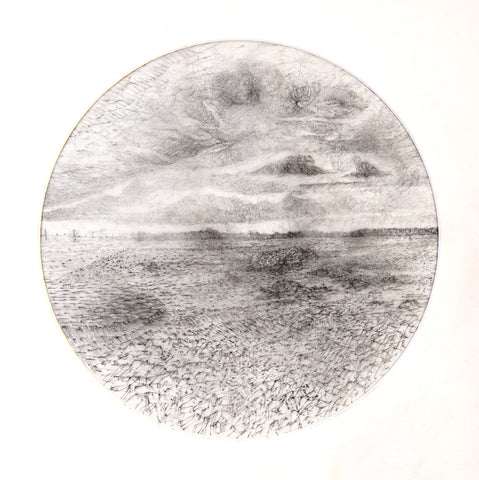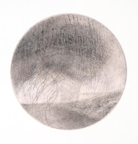 Ten Thousand Storms, #55, At High Rock, graphite and metal point on paper, 12" diameter