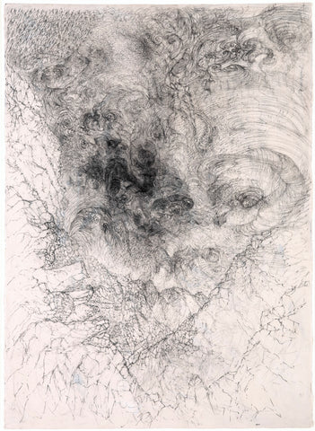 Ten Thousand Storms, #50, graphite and metal point on paper, 12" diameter