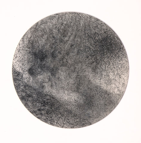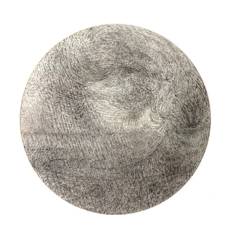 Ten Thousand Storms, #58, graphite and metal point on paper, 12" diameter