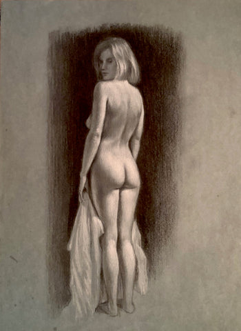 Osti, Standing Figure Looking Back, charcoal & chalk on toned paper, 14" x 9" Available