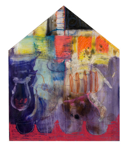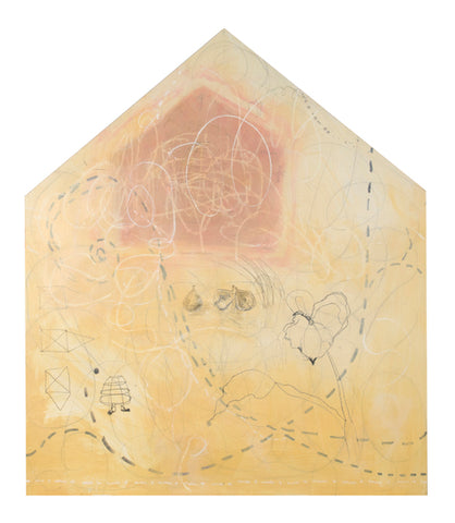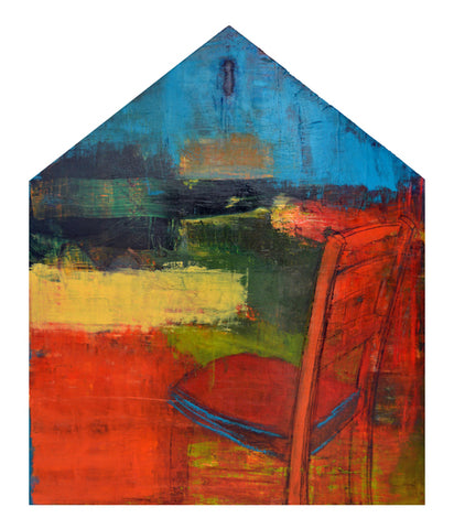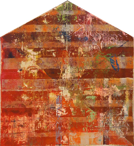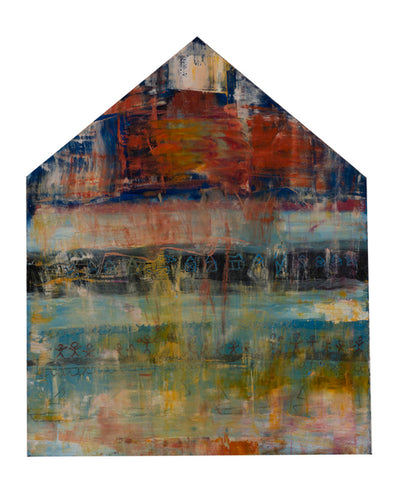 Others have used the house shape to address issues of confinement and women's work (e.g. Louise Bourgeois, Miriam Shapiro). That has not been my endeavor. Rather, I use the house shape to speak of direction and place, both physical and metaphoric. The house shape prompts us to dwell, to consider, where does the self reside? Who am I at any given point? What direction do I face? What remains?