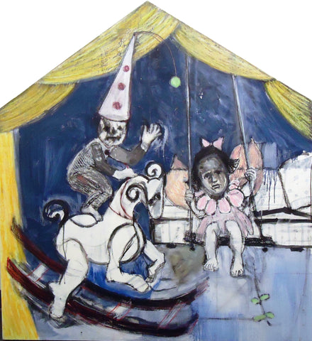 Sal & Nancy ride bravely off into the great goodnight, mixed media on wood panel, 52" x 48" Available