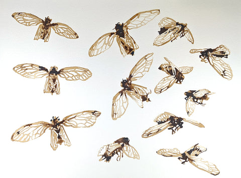 Stockton Moore, Cicada Studies: Acorn/Rust, artist-made acorn ink with rust modifier on paper, 12" x 16"