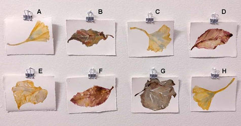 Stockton Moore, Leaf Studies (8 works), artist-made inks with soda ash and rust water on paper, 2.75" x 3.5"
