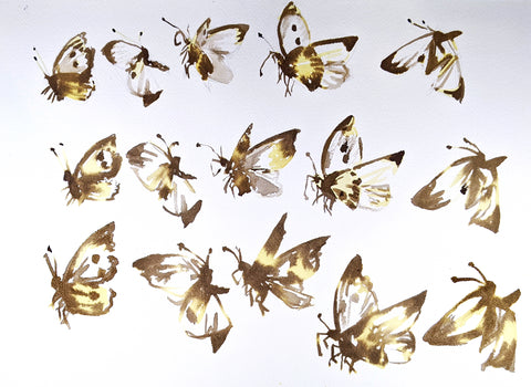Stockton Moore, Tiger Swallowtail Studies: Marigold/Rust, artist-made marigold ink with rust modifier on paper, 12" x 16"