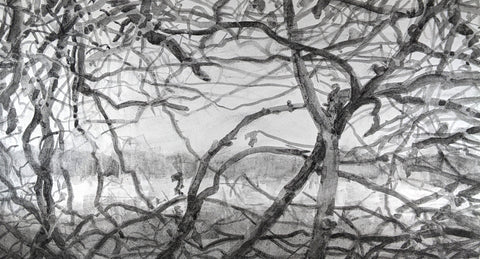 Stockton Moore, Winter Migration: Charcoal, artist-made charcoal ink from invasive vines on paper, 9.75" x 18"