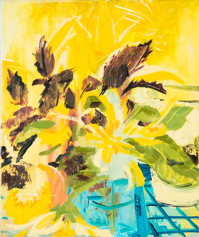 Whearty, Studio Still Life with Kathleen's Sunflowers, oil on canvas, 18" x 15"
