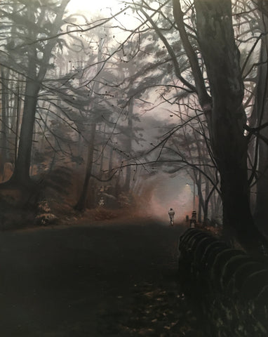 Daina Higgins, Pandemic Walk 1, oil on birch panel, 20" x 16"