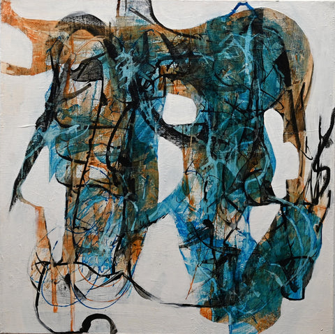 Rita Reisser, Organic Form I, acrylic and ink on canvas, 20" x 20"