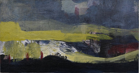 Rita Reisser, Out of the Blue I, acrylic on paper on board, 6" x 13"