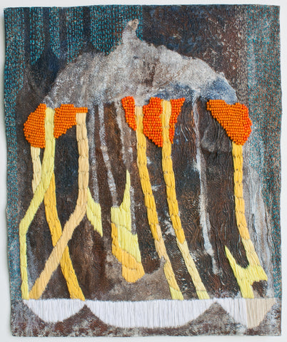 Erin Castellan, Heat in the Bowl, mixed media on fabric, 11" x 9"