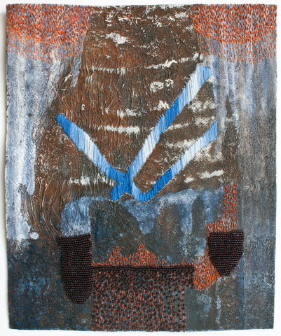 Erin Castellan, My Blue Sky, mixed media on fabric, 11" x 9"