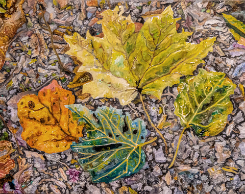 Gary Grissom, Leaves on Rocks, oil on panel, 11" x 14"