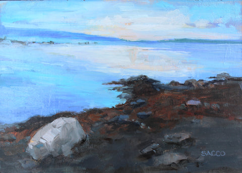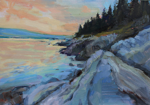 Kerry Sacco, Sunrise, Union River Bay, oil on panel, 5" x 7"