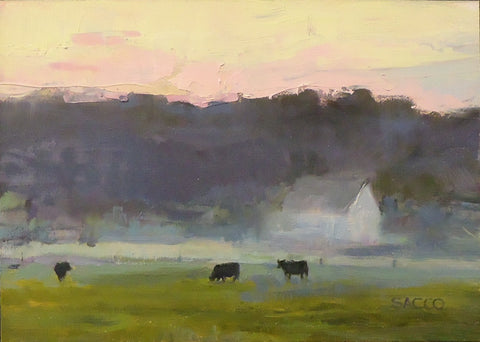 Kerry Sacco, The Mist Settles In, oil on panel, 5" x 7"
