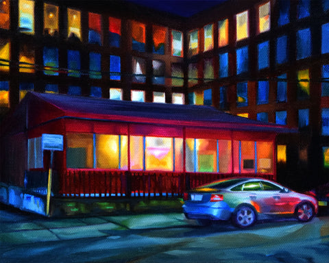 Alexander Cheves, Tough Night Out, oil on paper on wood, 8.5" x 11" Available